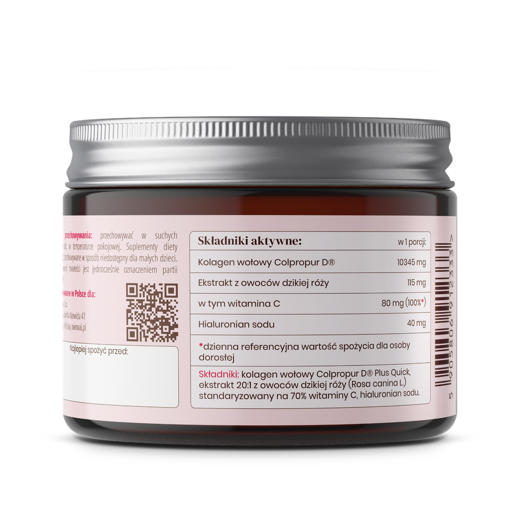 Kolagen wołowy Colpropur D® z hialuronianem sodu i dziką różą. Ponad 10 g kolagenu w porcji i żadnych dodatków technologicznych.
